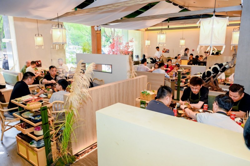 2025年,山野风自带流量。沸点计划将川渝火锅与天然野生食材融合,并通过“天然去雕饰”的门店装饰风格,在都市中打造了一片可呼吸的“山野空间”。2025年4月,沸点计划全国首店在杭州开业后一炮而红,10天便登上大众点评滨江区火锅热门榜第一名。