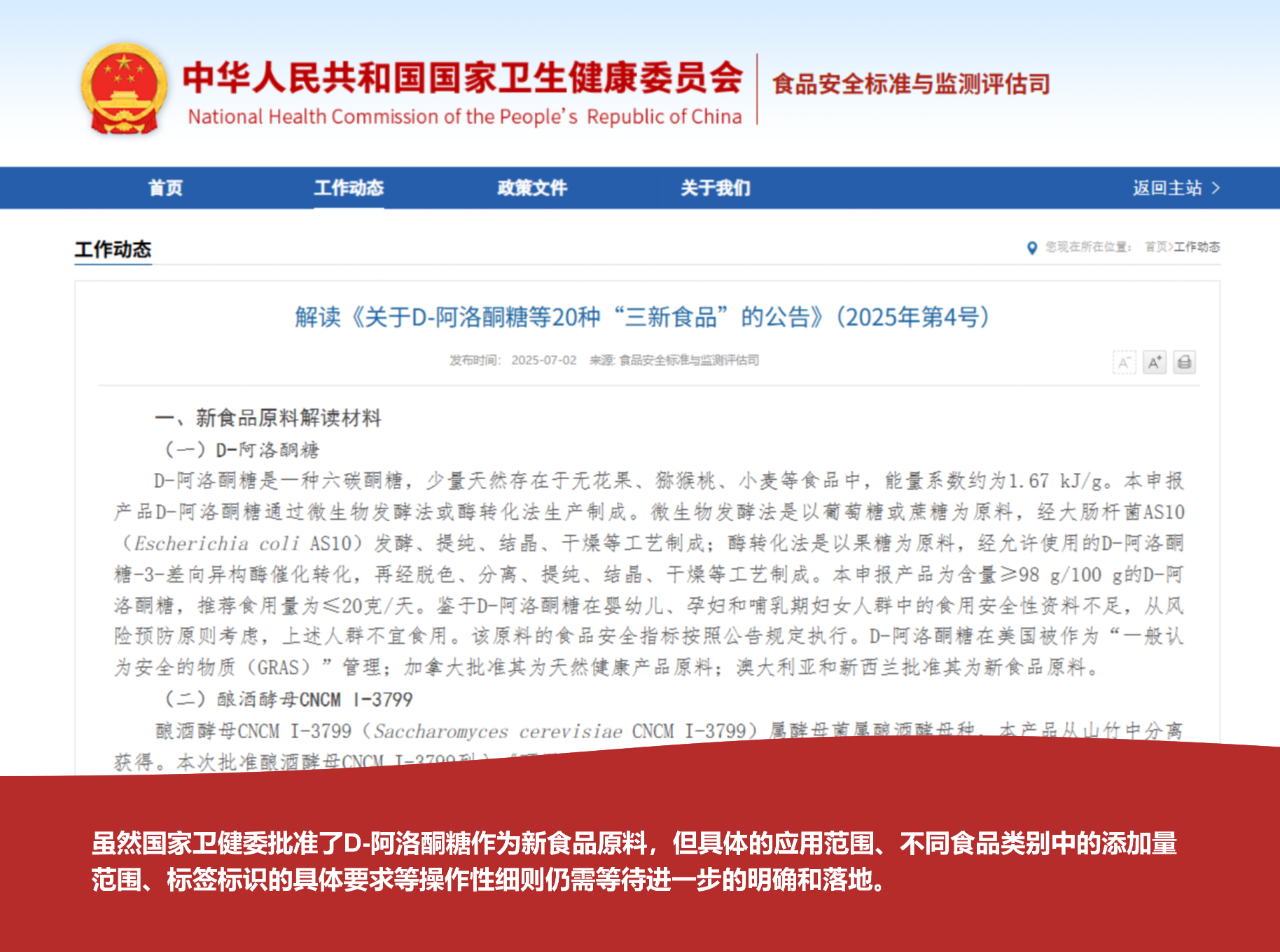 近期D-阿洛酮糖正式获批引发了行业关注,作为新食品原料在成分、口感、健康价值、使用范围等多方面具备独特优势,不仅填补了国内健康代糖市场的空缺,为食品界提供了天然代糖新选择,还有望引领行业树立新标准。