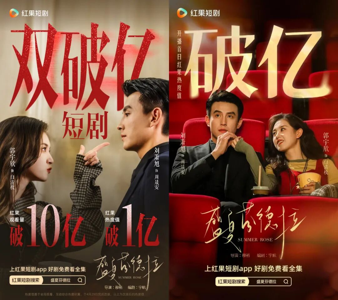 当然,这一系列的热度值破亿、观看量破10亿在近期红果平台上的多部短剧上屡次上演,但《盛夏芬德拉》的可贵之处在于,其终于有破圈苗头,在红果站外的多个社交媒体上也掀起热搜效应,与此同时,短剧圈新任顶流也顺利诞生。