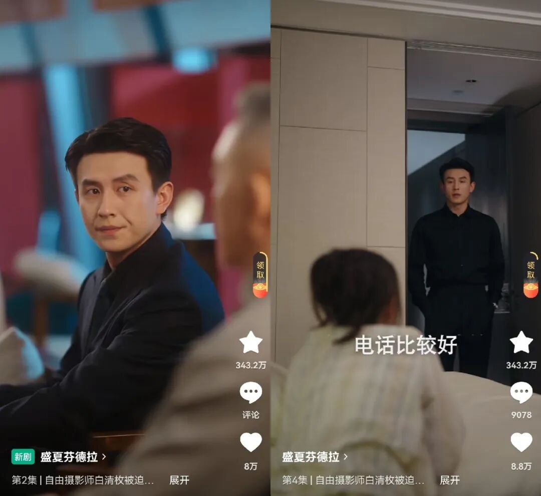 围绕《盛夏芬德拉》还有一点在于其是去年热播短剧《深情诱引》的番外,也有人物联动出现,这让短国的创作思路又打开了一层面,续写IP之外,创造一个“深情”帝国、构建一张庞大的关系网,也能起到不俗的产品化效果。