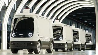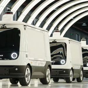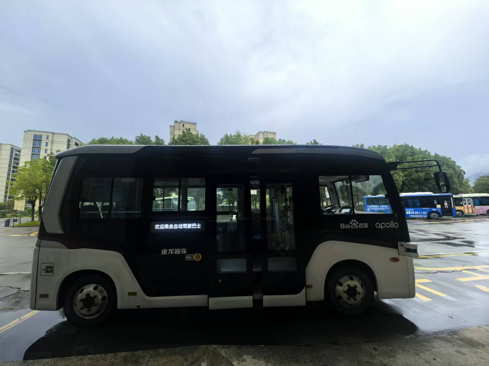 与这座群山环绕的县城看起来有些割裂的,还有街道上的自动驾驶公交车、无人小巴接驳车、无人物流配送车、无人清扫车等。