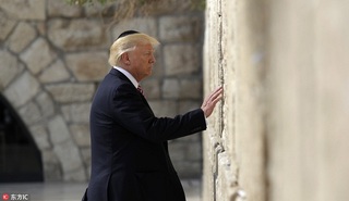 周一,头戴犹太人传统无边圆帽的美国总统特朗普站在耶路撒冷“哭墙”傍边,低头祷告,并将一张纸条塞到了哭墙里面。他成为美国历史上首位参观哭墙、并在墙边祷告的在任总统。