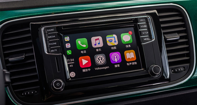 在内饰上,大众甲壳虫最大程度上保留了经典车型的设计元素,彩色饰板让整个内部空间明亮艳丽,是姑娘家喜欢的调调。在不影响风尚的前提下,大众还为甲壳虫加入了基于大众第二代MIB模块化多媒体系统打造的Composition Media 车载娱乐系统,所配备的6.5英寸彩色屏幕支持触摸操作,并拥有手机映射功能(App-Connect)、CD/MP3播放、收音机、AUX-IN接口、USB接口、SD卡槽、蓝牙连接等功能。音响依旧是熟悉而亲民的大众风味,如果舍得多花钱,还可以买到带9个扬声器的Fender品牌的音响系统。