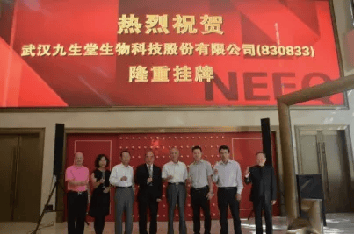 2014年,九生堂成为公众上市公司。图为全国股转系统(新三板)挂牌敲钟仪式现场