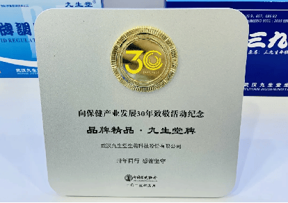 第二项大奖是,“九生堂牌”被授予“中国保健产业30年品牌精品”,获此项殊荣的品牌在全国范围内仅有6个,该奖项评价的标准为“每个品牌旗下的单款产品连续销售超过10年,单品累计纳税额超10亿元,展现出卓越的产品力与用户忠诚度”,“九生堂牌”旗下的“三九蛋白肽口服液”成为达标产品,正因如此,“九生堂牌”入列“中国保健产业30年品牌精品”。