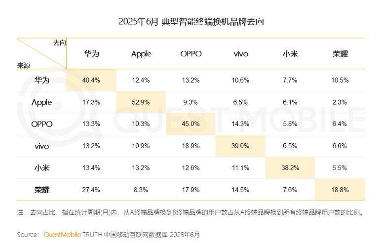 按苹果往年“挤牙膏”式的更新节奏,因基础款iPhone竞争力有限,小米靠“田忌赛马”吸引iPhone用户的产品策略确实可以奏效。QuestMobile统计的数据显示,2019年6月,iPhone用户换机到小米的占比仅为3.2%,2025年6月,这一数字变为了6.1%,近乎翻倍。