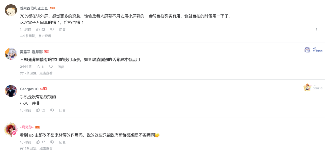 剁椒Spicy浏览钟文泽、李大锤同学、小白测评等数码博主关于小米17系列评测的评论区,发现关于背屏设计的讨论度相对较高,大部分网友均持负面看法,纷纷表示“纯伪需求”“为了不同而不同”“信我,明年一定取消这背屏”。