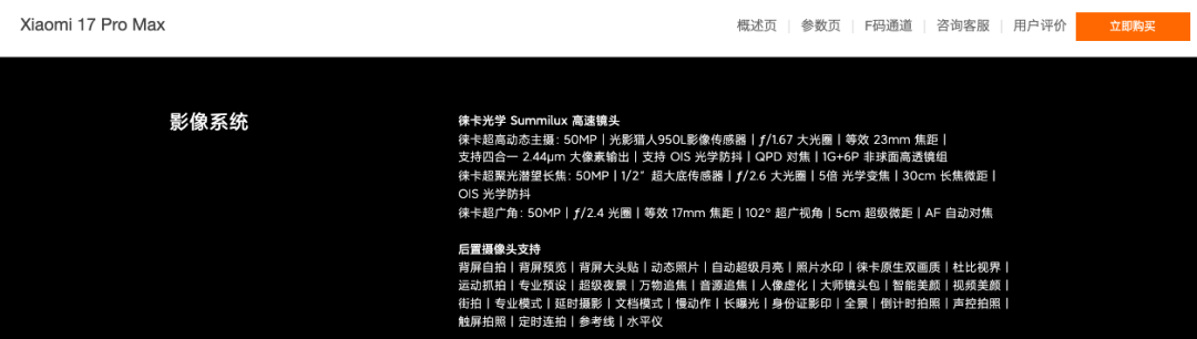 为了避免冲击Ultra系列影像旗舰的地位,小米17系列的影像配置较为收敛,整体表现并不突出。比如,小米17 Pro Max的长焦镜头为1/2英寸,5000万像素,f/2.6光圈。对比而言,即将问世的OPPO Find X9 Pro的长焦镜头传感器为三星HP5,1/1.56英寸,2亿像素,f/2.1光圈,综合素质远超前者。