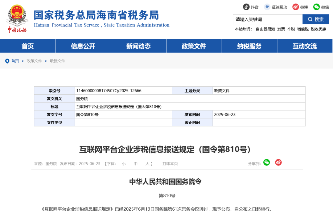 前不久,一份由国务院签发的《互联网平台企业涉税信息报送规定》(以下简称“《规定》”),正重塑中国平台经济的税收生态。该规定是中国加强税收监管,特别是对数字经济领域税收监管的一个里程碑式文件。意味着无论是电商商家、主播、MCN机构以及各类平台企业,都将迎来前所未有的税务监管透明时代。