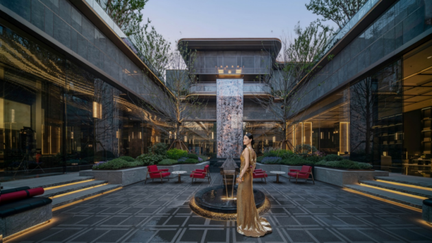 结合曲江的人文,观宸曲江的设计中融入了更多的文化元素,长约93米、高约10.10米超尺度的门廊,重构盛唐归家礼序,完美复刻盛唐宫阙的庄严气象。