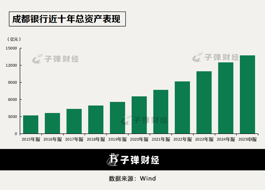 Wind数据显示,自2017年开始,成都银行连续8年营收净利实现双增,资产规模的扩张同样“迅猛”。