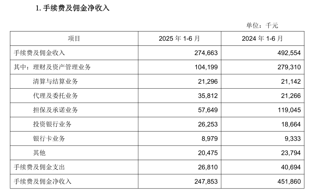 但手续费及佣金净收入(即中收)仅为2.48亿元,同比下降45.15%,令人大跌眼镜,该项收入的大幅下跌也拖累了该行的净利润增速表现。