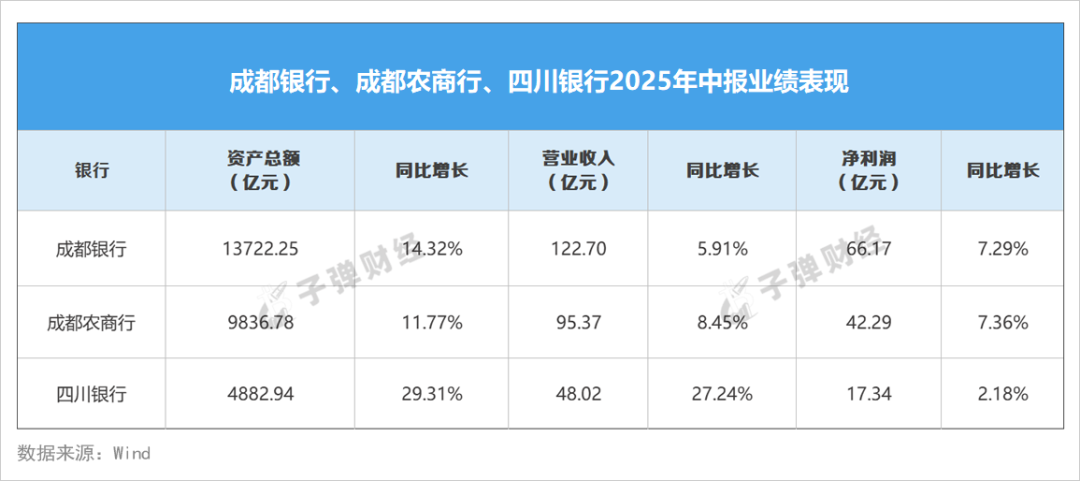 除去这两家银行之外,作为四川省首家省级法人城市商业银行——四川银行,近年来发展势头强劲。2025年上半年,该行资产增速近30%,营收增幅达到27.24%,增长潜力较大。