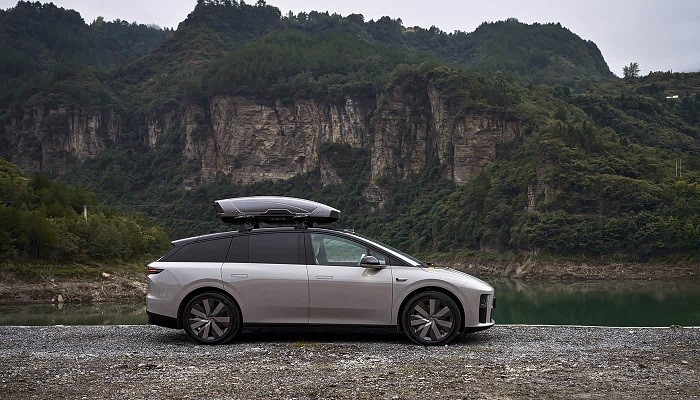 底盘采用前双叉臂后五连杆全铝悬架,可选装双腔空气悬架与CDC可变阻尼减振器,并配备RNC主动降噪与多层隔音玻璃。动力方面提供后驱340马力和四驱544马力两种版本,搭载87.3kWh电池,支持5C超充,充电10分钟可补充500公里续航。