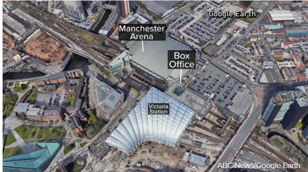 目前,体育场发表声明称当晚的爆炸发生在场外的公共区域。由于当天体育场举办的是美国歌手爱莉安娜·格兰德(Ariana Grande)的演唱会,现场有很多年轻人。
