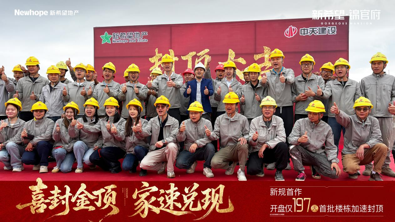 9月28日早上,新希望·锦官府举行首批房源主体封顶仪式,而这距离项目首开仅过去了197天!当天,新希望地产相关领导、工程单位相关领导及各班组工作人员,现场见证这一重要时刻!