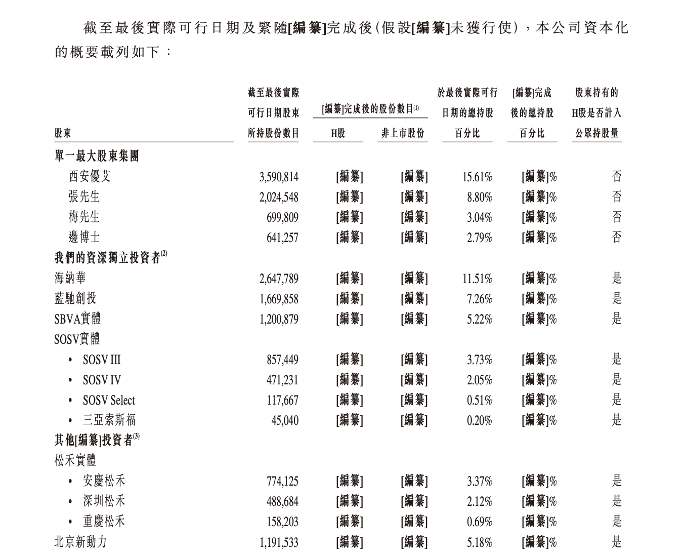 目前,该公司的单一最大股东集团包括创始人、CEO兼董事长张朝辉,创始人梅雪松,创始人、CTO边旭,以及员工持股平台西安优艾,合计持股约30.24%。其他重要投资方包括海纳华、蓝驰创投、SBVA实体等机构。