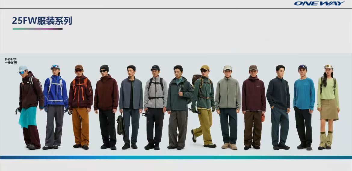界面新闻通过ONEWAY品牌手册了解到,2025年,该公司服装产品矩阵规划包括硬核户外、时尚机能、商务菁英、自由驭雪4个部分。例如,Elaa小青松短袖就是聚焦都市日常的产品,其色彩借鉴于北欧的湖水、极光和森林,想把户外的松弛感延展到城市里。
