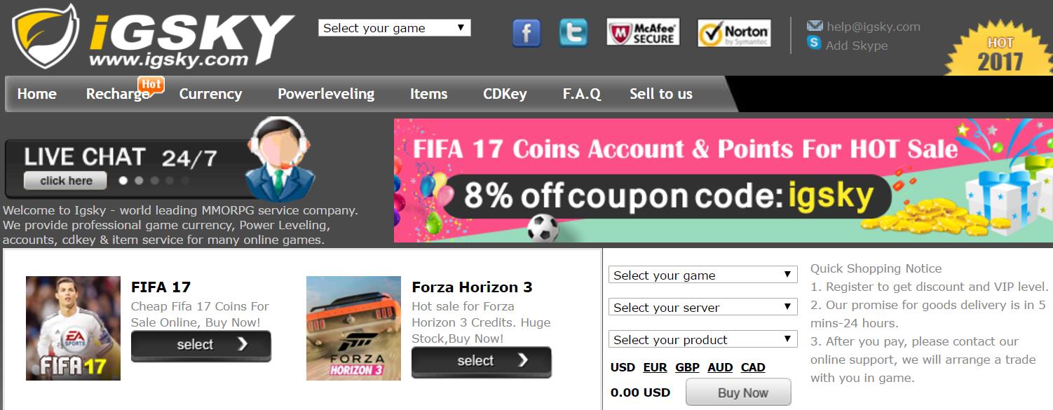 iGSKY主要销售《FIFA》《NBA2K》《精灵宝可梦GO》等游戏的虚拟金币,并从每笔中收取提成,其业务涵盖Xbox、PlayStation、手游等多个平台。该网站商品销售价格远低于官方价格,如亚马逊在售的4600点Xbox One版《FIFA17》游戏币,售价为39.99美元,而iGSKY网站1万点《FIFA17》游戏点数(最低价位档)价格仅为1.94美元。