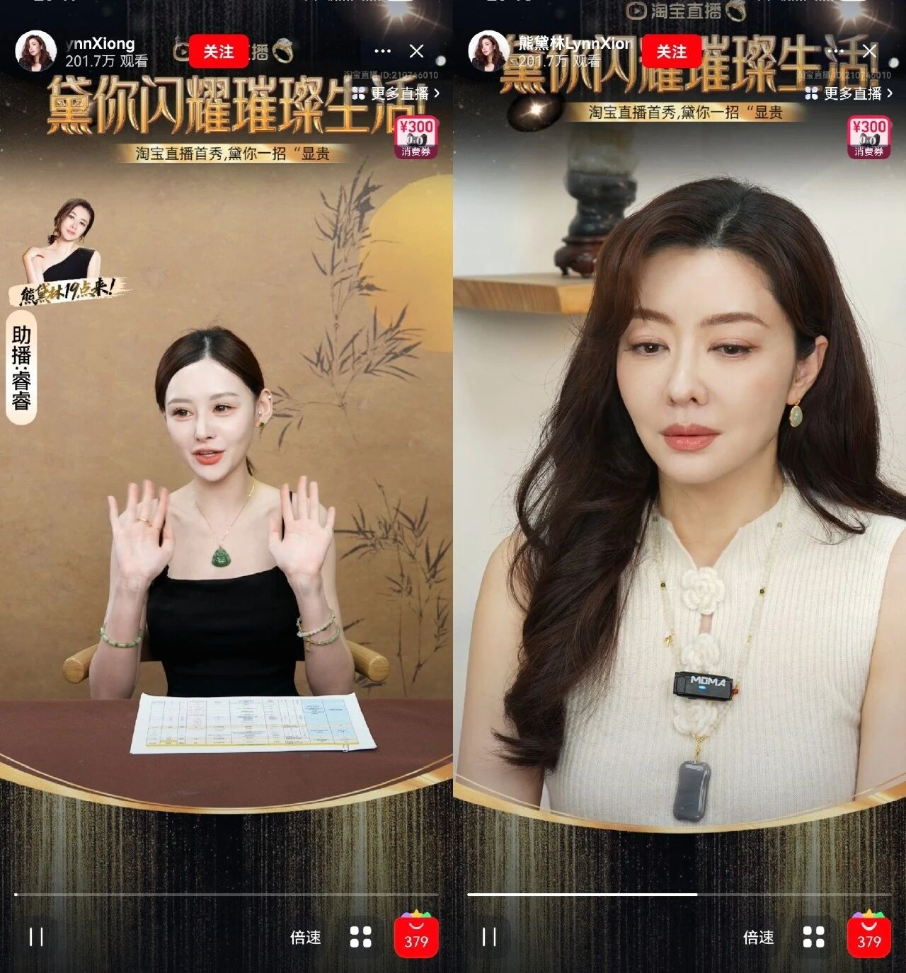 该场直播持续了10个小时,累计观看人次达到201万,主打玉石显贵路线。