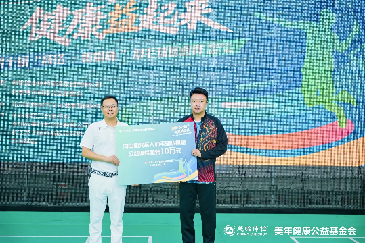 今年5月发布的《慈铭北京·2024年度健康体检大数据蓝皮书》显示,超重或肥胖、脂肪肝、空腹血糖升高等问题突出,亟需通过健康生活方式的普及与实践来改善现状。作为健康生活方式的倡导者和践行者,慈铭体检通过为中国残疾人羽毛球队提供公益体检、保障2023北京马拉松赛事、举办公益跑等活动,长期支持体育事业发展。做这一切的目的,就是为了传播健康理念,让更多人意识到运动对于健康的重要性。今天,慈铭体检再度向中国残疾人羽毛球队捐赠价值10万元的公益体检服务,期望助力队员们以强健体魄与昂扬斗志投身每一次训练与赛事,为祖国争光。