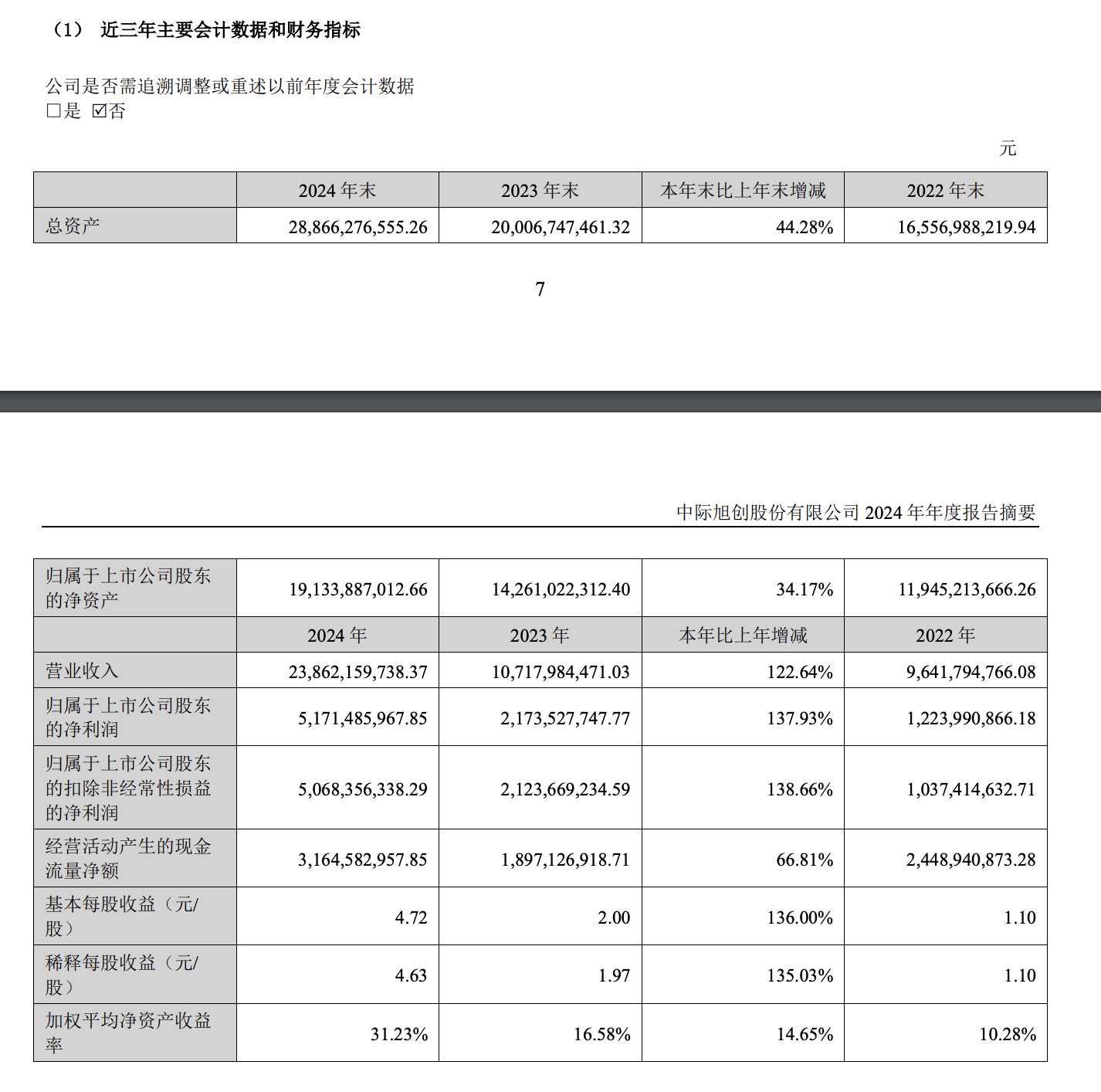 财报显示,2022年至2024年,公司的营业收入分别为96.42亿元、107.18亿元、238.62亿元;归母净利润分别为12.24亿元、21.74亿元、51.71亿元。今年上半年,公司营收为147.89亿元,同比增长36.95%;归母净利润39.95亿元,同比增长69.40%。