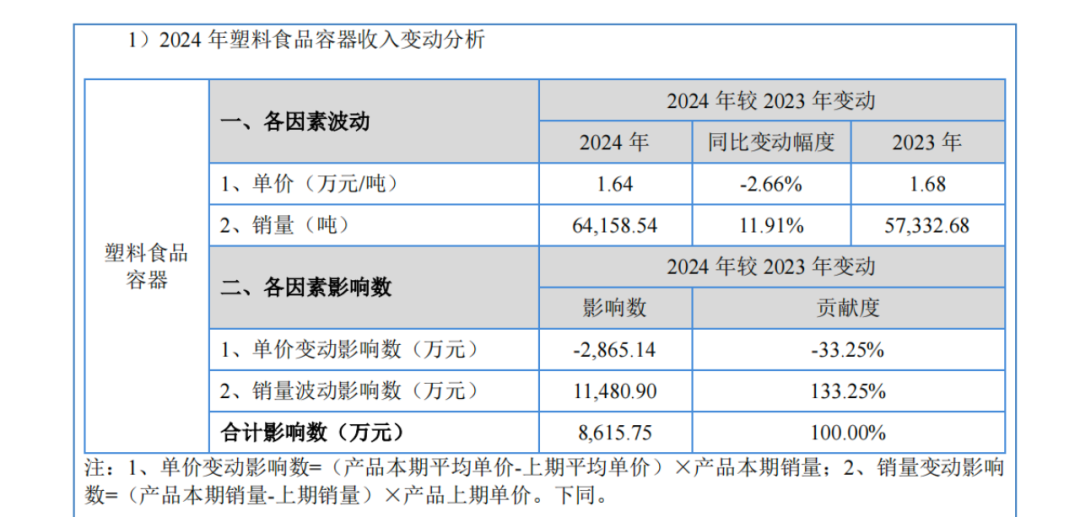 2024年、2025年1-6月,公司对西贝塑料食品容器销售额分别同比下降13.97%、13.86%,主要系西贝采取收缩快餐、砍掉零售、回归到西贝擅长的复杂中餐业务的策略,对公司产品的需求有所下降,双方单价则随着原材料价格下降同向变动。