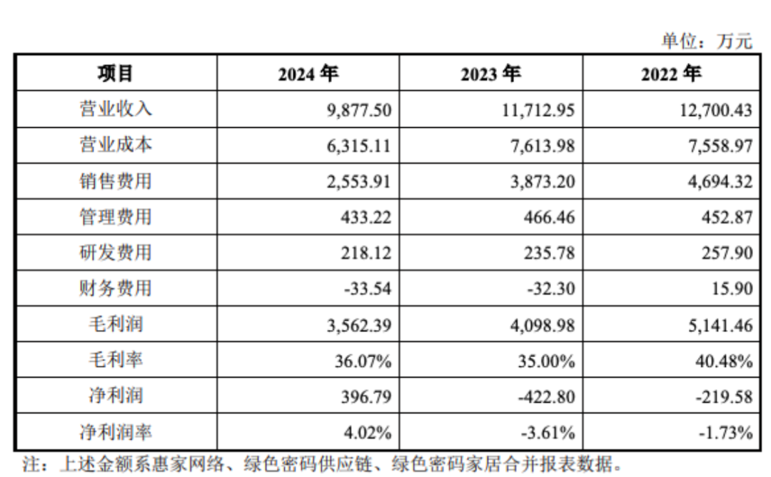 何麟君另一家持股80%的惠家网络,主营业务为家居日用品销售。2022年-2024年,惠家网络的营收分别为1.27亿元、1.17亿元和0.99亿元。