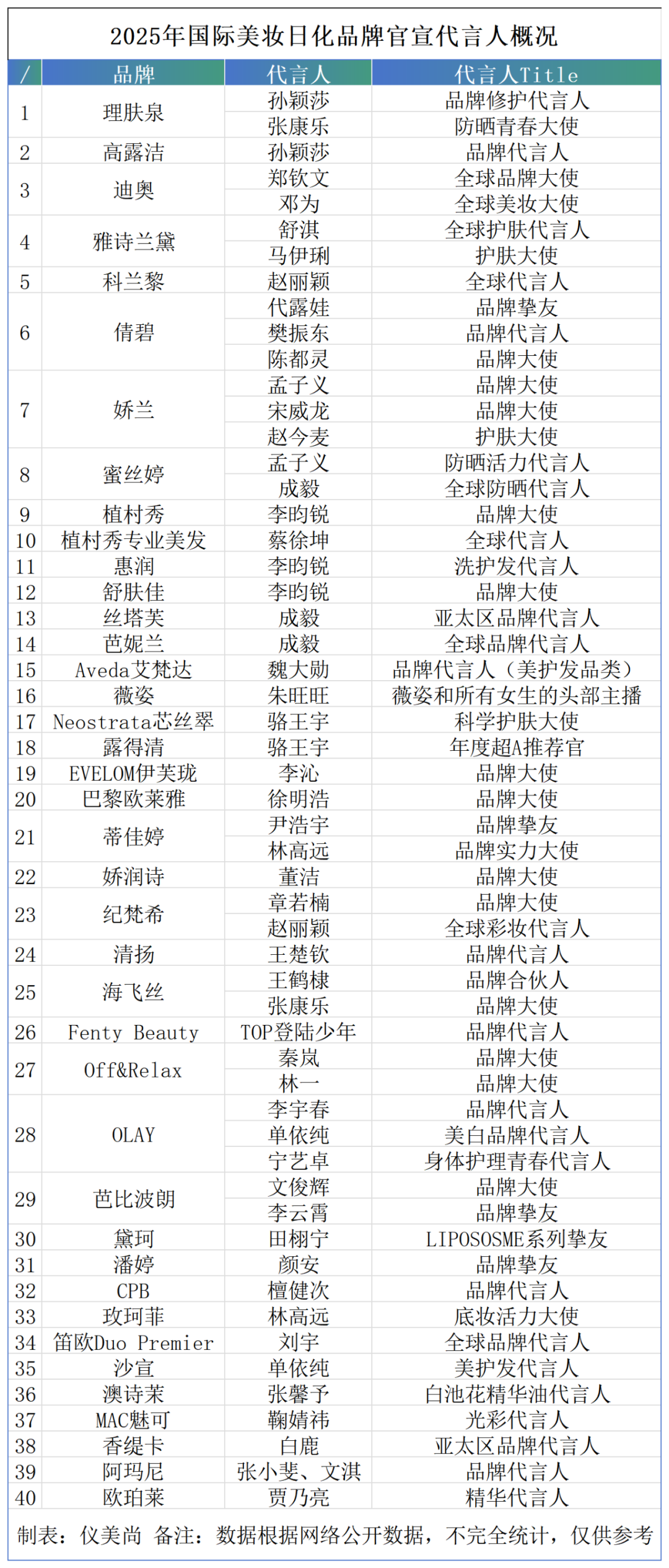 这些,只是2025年美妆品牌官宣代言人的冰山一角。截至目前,今年美妆品牌官宣代言人的“火力之猛”,几乎达到了行业峰值。据不完全统计,从开年至今,美妆行业已官宣的品牌代言人至少超过200起。