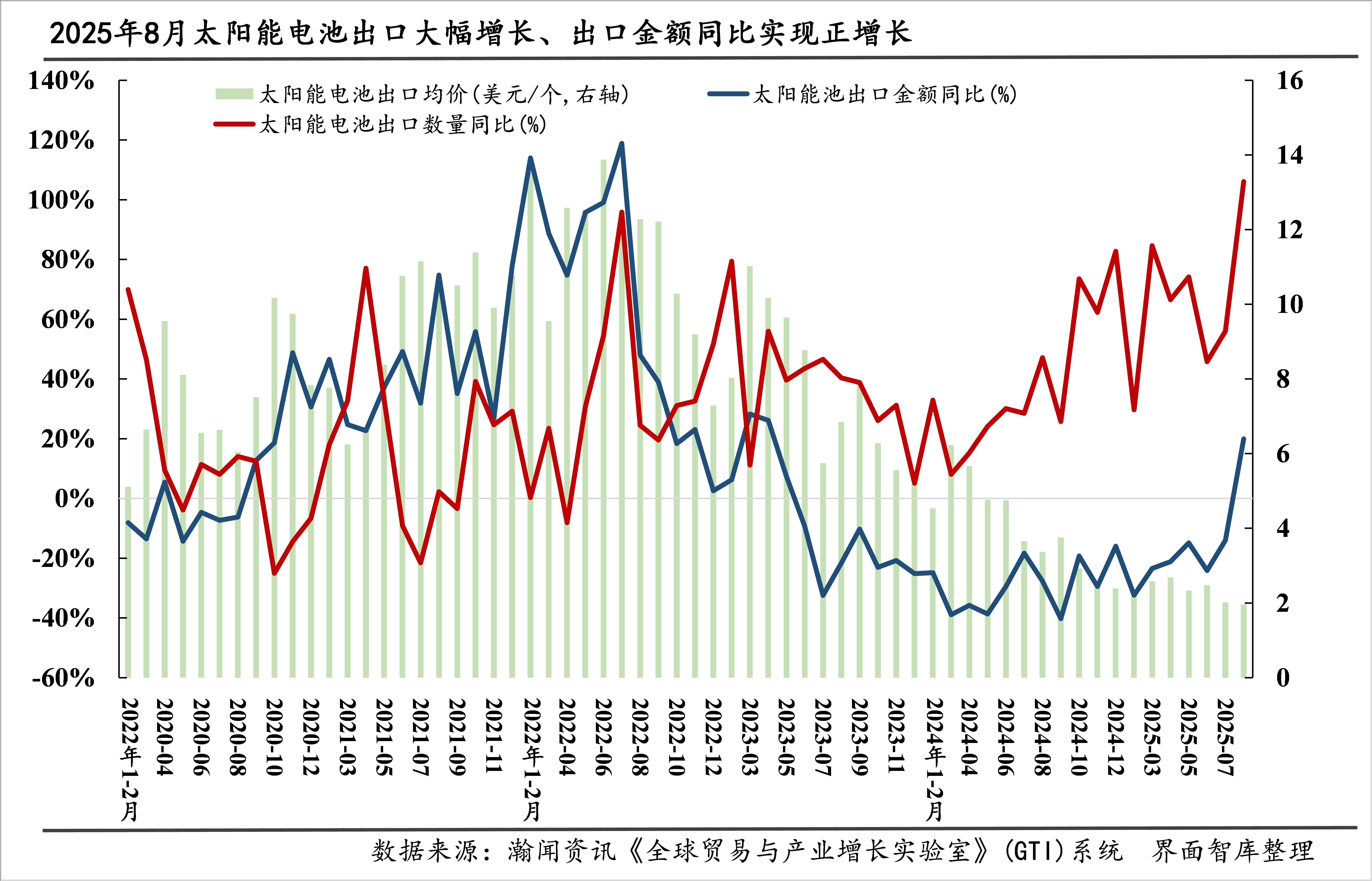 一、太阳能电池出口时隔26个月首次实现同比正增长