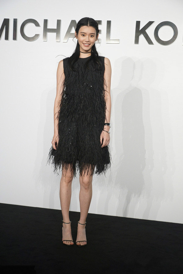高个子的奚梦瑶则选择了黑色的羽毛单品来增添妩媚的成熟女人气息。