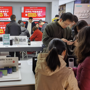 2024年12月7日,南京新街口商圈一大型电子商城内,到处都可看到“江苏省3C数码产品补贴专项活动”和“享政府补贴15%”的内容。图片来源:CFP