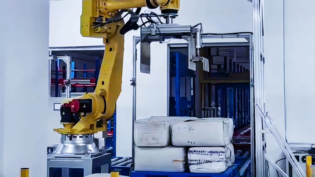 在制药工厂,梅卡曼德AI视觉引导麻袋拆垛 图源:梅卡曼德