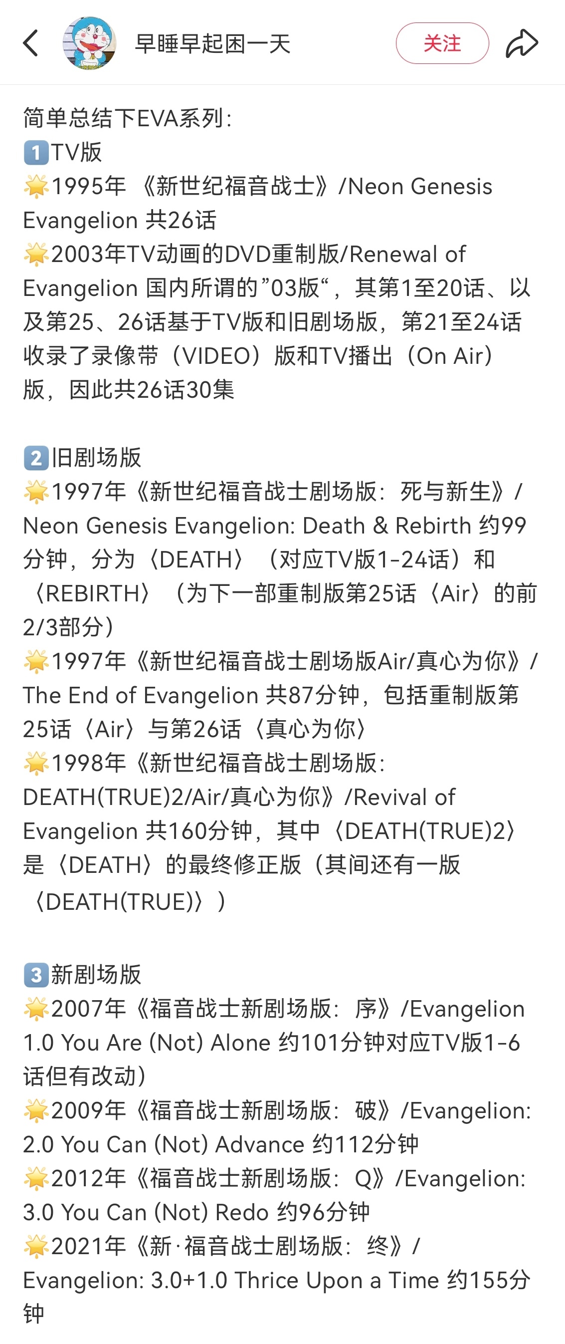 《新世纪福音战士》的不同版本虽然在人物、剧情和结尾上各有差异,但都建立在相同的世界观之上。旧剧场版与TV版主要在结尾上存在区别,新剧场版基本沿用旧版剧情,对后半部分进行了大幅改写。无论版本如何变化,故事的起点始终一致: