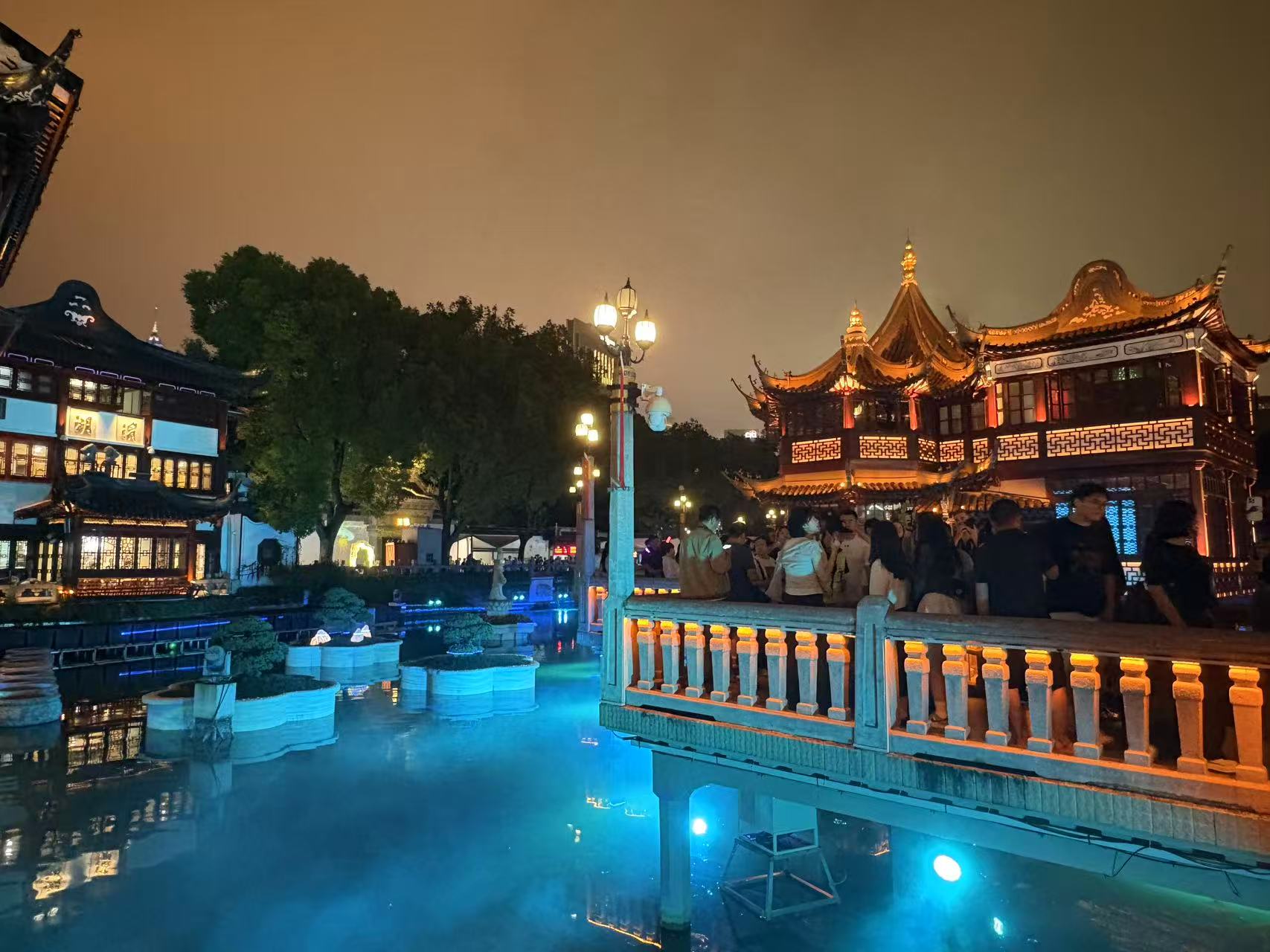 自豫园对外开放夜游以来,以“豫享山林”为主题的夜间实景博物馆成为新晋打卡地,时长约50分钟的游览动线上,24处精心设计的景点串联起传统文化与现代光影的碰撞,游客们分批感受着老城厢的夜间魅力。