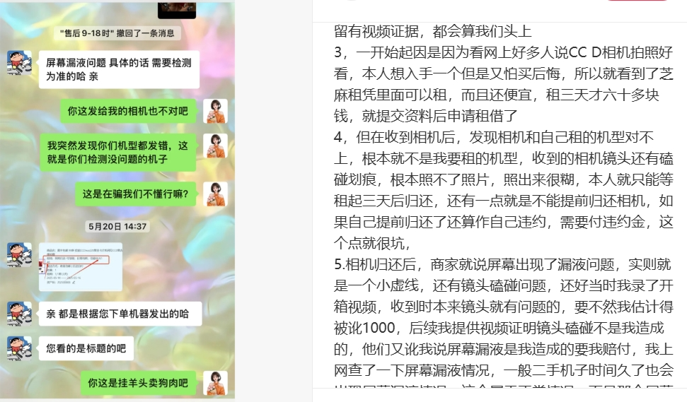 有个人商家曾在小红书上分享自己找回相机的过程,与租客反复扯皮后,最终在法院胜诉执行后才追回了自己的设备。