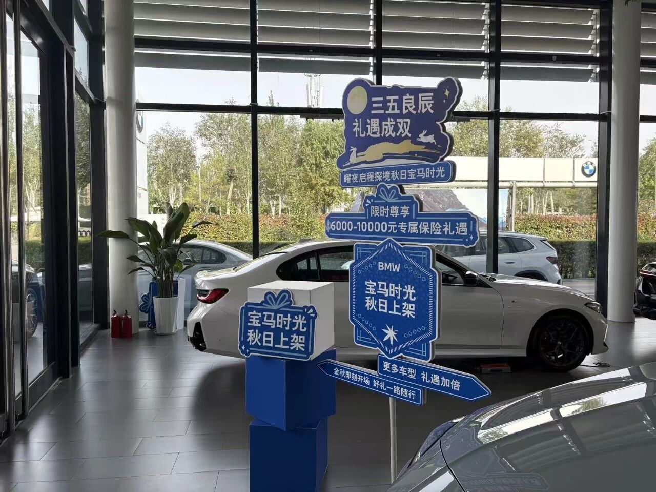 ▲宝马汽车4S店内的中秋优惠活动。图 / 每人Auto摄