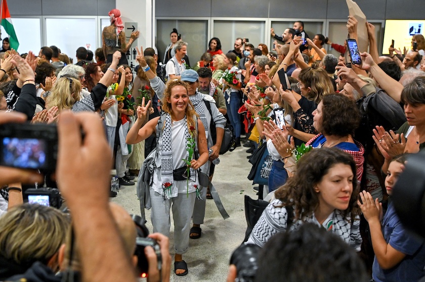 2025年10月6日,希腊雅典,活动人士抵达埃莱夫塞里奥斯·韦尼泽洛斯国际机场。来源:视觉中国