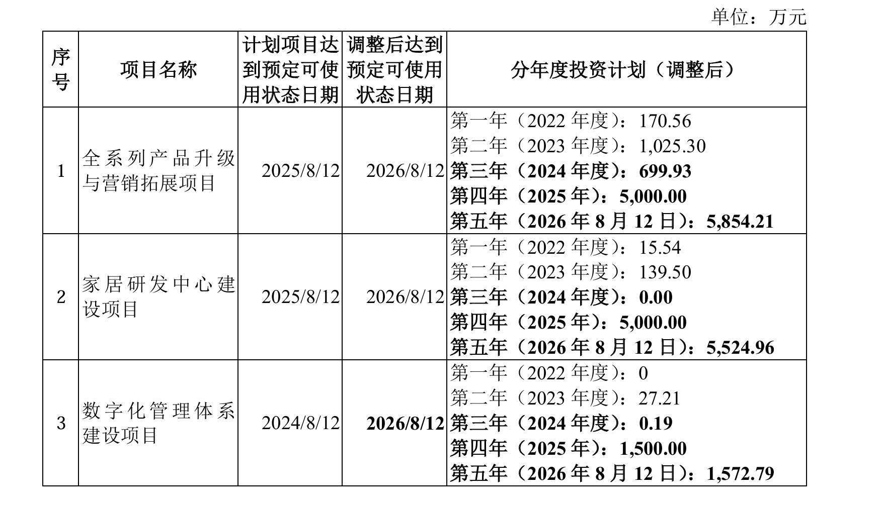 2022 年趣睡科技 IPO 时募集资金拟投入三个项目,分别为 “全系列产品升级项目”“家居研发中心项目” 和 “数字化管理体系建设项目”。但在2025年4月,公司公告称三个项目全线延期,其中前两个项目延期一年,数字化管理体系建设项目更是延期两年,战略推进节奏严重滞后。