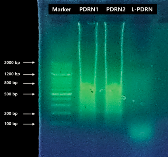 除生物活性升级外,电泳分析也显示,与传统的三文鱼PDRN相比,L-PDRN的DNA片段更小并小于100bp,表明L-PDRN具有更好的生物利用度和皮肤吸收能力。
