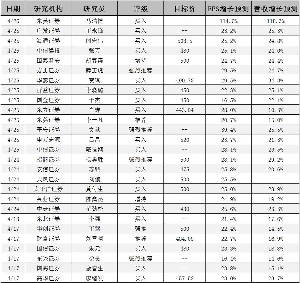 32家机构中,有20家给出了贵州茅台的目标价。其中6家机构的目标价在450元或以下,已经被达到。其余的机构中,不乏预测茅台股价升至500元的券商,其中申万宏源给出的目标价最高,为520元。