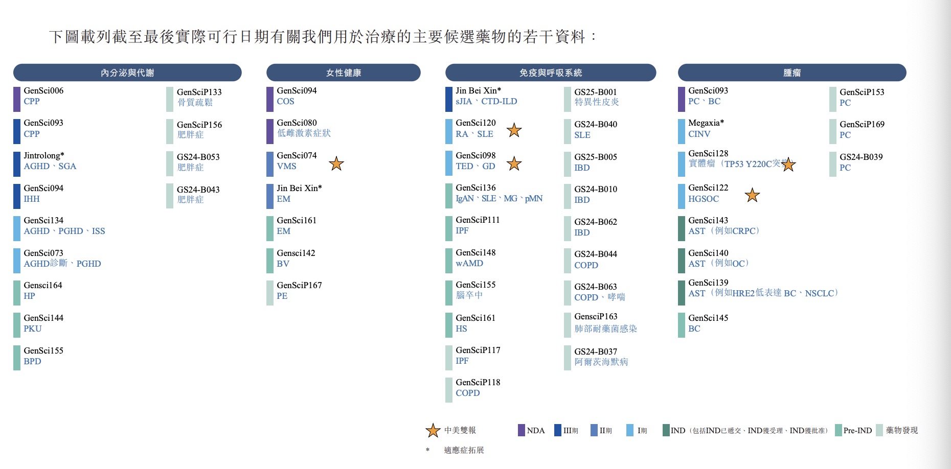 界面新闻记者了解到,目前长春高新已布局超过40个处于临床阶段或已递交新药临床试验申请(IND)申请的管线项目,其中包括11个I类创新生物制剂和4个I类创新化学药物,主要覆盖内分泌与代谢、女性健康、免疫与呼吸系统及肿瘤等领域。在治疗性药物管线中,已有5个项目同时获得国家药监局及美国食品药品监督管理局的新药临床试验申请批件。
