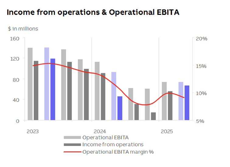 机器人与离散自动化事业部的运营息税摊销前利润,则同比下降20%至7400万美元,利润率同比下降200个基点至9.1%。尽管机器人业务的收入与利润率同比小幅改善,然而潜在关税问题所引发的不确定性,使客户下单趋于谨慎,导致订单整体疲软。