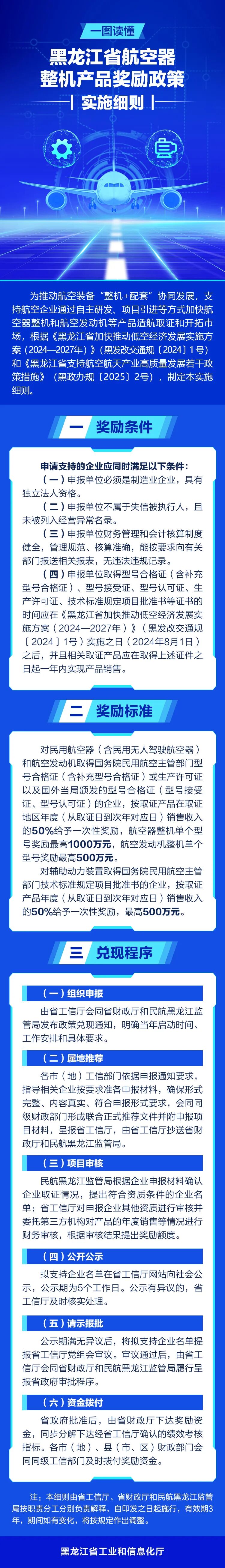 为推动航空装备“整机+配套”协同发展,支持航空企业通过自主研发、项目引进等方式加快航空器整机和航空发动机等产品适航取证和开拓市场,根据《黑龙江省加快推动低空经济发展实施方案(2024-2027年)》(黑发改交通规〔2024]1号)和《黑龙江省支持航空航天产业高质量发展若干政策措施》(黑政办规〔2025〕2号),制定本实施细则。