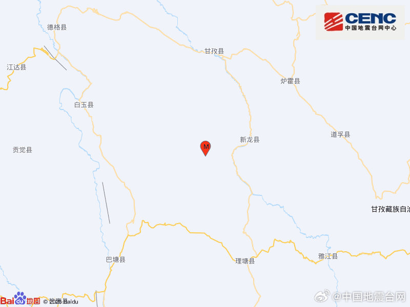 中国地震台网正式测定:10月10日11时10分在四川甘孜州新龙县(北纬30.84度,东经99.92度)发生3.1级地震,震源深度9千米。