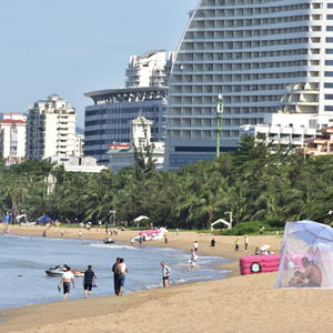 2025年10月1日,海南三亚,游客在三亚湾景区休闲度假。图片来源:CFP
