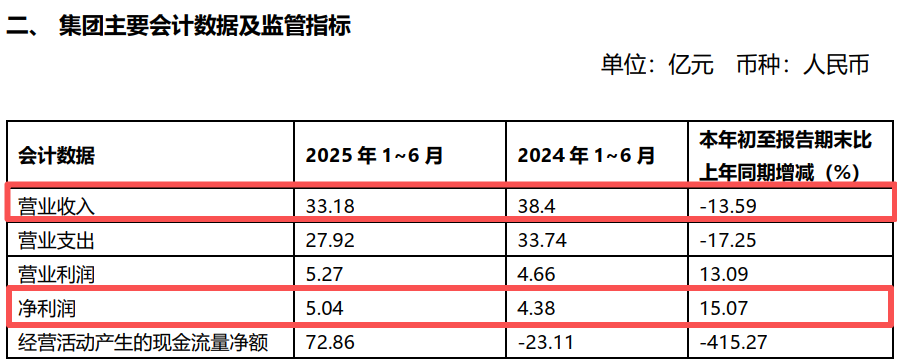 截至2025年上半年,富滇银行资产总额达到4299.48亿元。在业绩表现上,今年上半年该行营收同比下滑13.59%,净利润同比上涨15.07%。