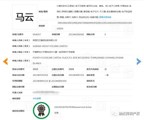马云成为内地首富固然值得关注,但身为知识产权从业者的小纳却更关注马云爸爸有多少无形资产——知识产权。以商标为例,小纳在商标局官网查询发现马云爸爸共注册了10000个商标,就是说马云爸爸在注册商标这件事情上就花费了近千万RMB,不得不让小纳感叹:真是厉害了我的马云爸爸!