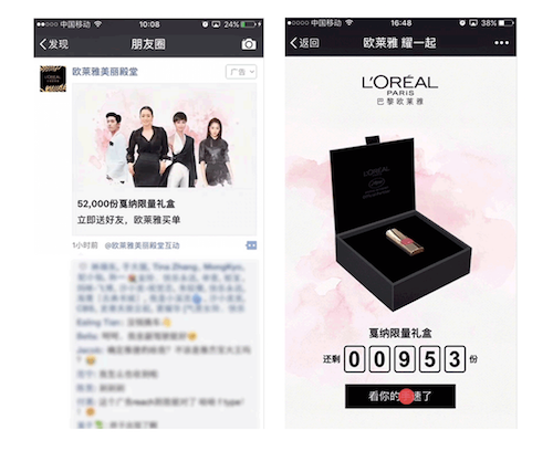 卡片广告就是一个将效果和品牌展示两者更紧密结合的一个新产品。目前开片广告第一批客户有10个左右。每个案例都经历了微信团队与客户的反复沟通,确定合适的时机、主题和创意。比如卡提亚的卡片主题是520迷宫、欧莱雅的广告是与戛纳电影节。据Sherri透露,在合作过程中,先后出了10版视觉效果,两版朋友圈视频。