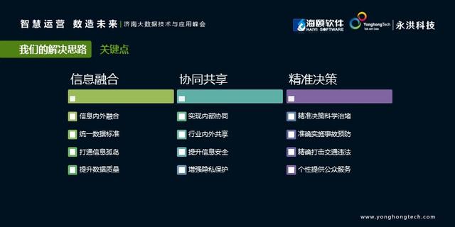 依靠大数据手段,提升我们信息化的联动水平、智能化水平,包括后续的智能化决策,准确的事故预防,以及精确违法打击几个方面。